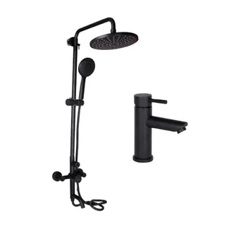 Функціональний комплект, що включає змішувач для раковини та універсальну душову стійку на два споживачі. Спільне використання забезпечує зручність та гармонійне оформлення ванної кімнати.