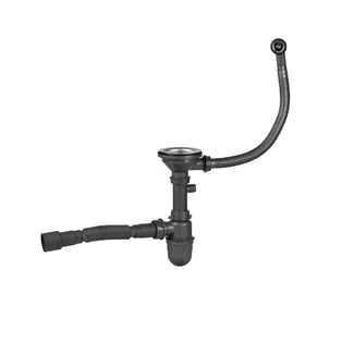 • Сифон для кухонної мийки LK10, Graphite, випуск 115 мм, колбовий з круглим переливом та доп. відведенням (вихід гофра 40/50 мм) LIDZGRA470100301 Lidz