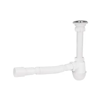 Сифон для кухонної мийки Lidz LK04 має вигляд колби, виготовлений із пластику білого кольору. Виріб має гладку внутрішню поверхню, що перешкоджає накопиченню бруду на стінках. Резервуар колби легко знімається, тому його очищення від осілих твердих частинок не складе великих клопотів. Гофрований вихід дає можливість змінювати довжину та кут труби. Цей сифон має окремий висновок для підключення побутових приладів, що використовують воду.