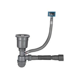 Сифон для кухонної мийки з переливом Lidz LK03 виготовлений із пластику білого кольору у вигляді склянки - колби з металевими гратами та гофрованих труб. Резервуар сифона відкручується для чищення. Гофрований вихід дає можливість змінювати довжину та кут труби. Завдяки комунікації для переливу можна уникнути переповнення кухонної раковини водою.