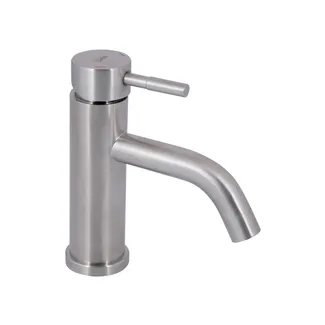Змішувач для раковини Lidz Aria 0011F LDARI0011FNKS46091 виготовлений з нержавіючої сталі, яка не схильна до корозії, стійка до ударів і тріщин. Брашована поверхня надає змішувачу оригінального зовнішнього вигляду. Інтенсивність водного потоку та температура регулюються за допомогою переміщення важеля. Підключення води відбувається через гнучкі шланги з діаметром підключення 1/2", які входять до комплекту постачання.
