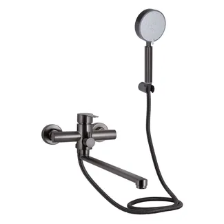 • Змішувач для ванни Pure 005, Graphite (k35) з довгим поворотним виливом та душовим гарнітуром BRIPUR005GRP Brinex